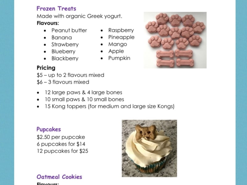 I’m located in Milton and decided to start this small business after I got a puppy last October. When he started teething I starting making him frozen treats. I then decided to sell the treats after having a couple of dogs taste them. I had clients who had requested pupcakes for their fur baby’s birthday and cookies for daily treats. My best seller would be the frozen treats and cookies.