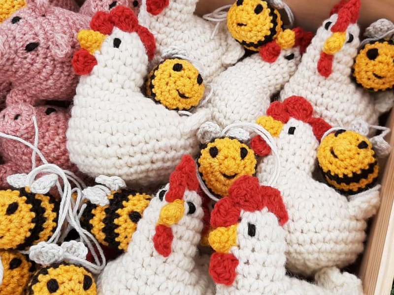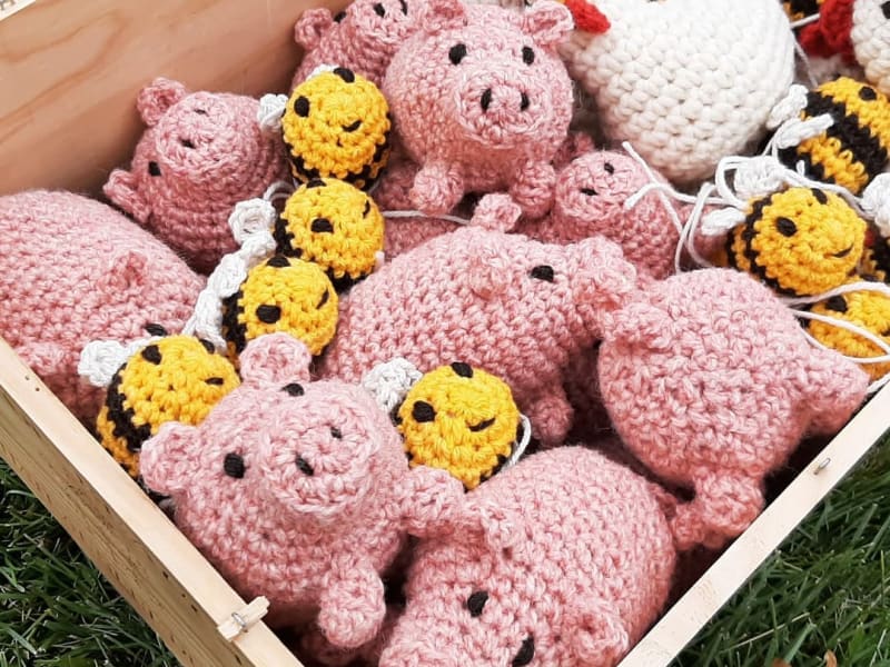Atelieh started 1 year ago in September of 2020. As a crocheter who uses a lot of yarn, I was curious to see if I could purchase wool yarn that was made in Canada versus made overseas. In my research I discovered some local farmers with beautiful yarn from their sheep farms. Relationships were formed and I haven't looked back! My best sellers are in tribute to local Canadian farmers with chickens, pigs, and sheep! I am proud to support Canadian farmers and yarn dyers through my creations by bringing the country to the city.