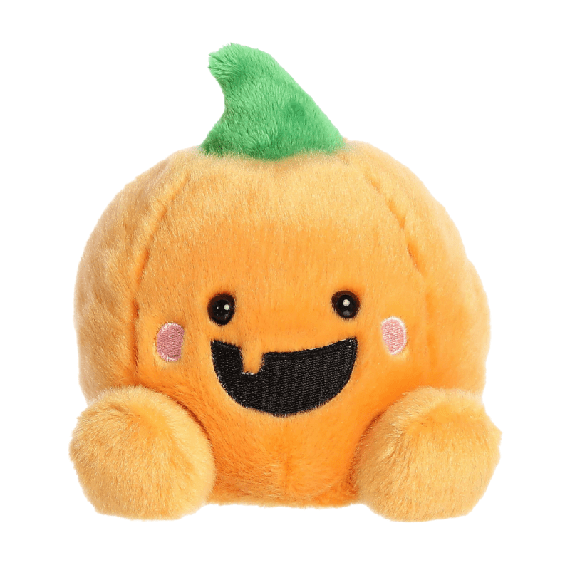 The Palm Pals™ Gourdon Jack O' Lantern™ Plush is a cheerful, round pumpkin stuffed animal with a big grin, blushing cheeks, and a soft green stem. Always ready with a silly joke or playful antic, Gourdon brings laughter and lighthearted fun to every Halloween celebration. This charming plush makes a perfect gift or present for anyone who loves festive, feel-good Halloween vibes.