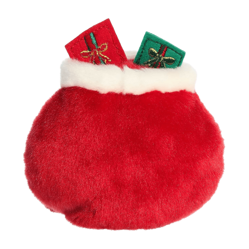 The Palm Pals™ Velvet Santa Bag™ Plush is a soft, red stuffed toy with white trim, a drawstring bow, and cheerful gifts peeking out. With a sweet smile and huggable shape, Velvet brings festive charm and cozy holiday spirit to any collection. This adorable plush makes a perfect gift or present for snuggling, decorating, or spreading Christmas cheer.