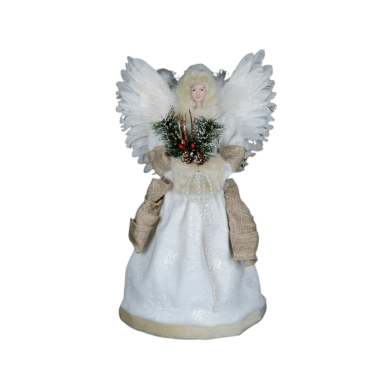 Elevate your holiday tree with the Ivory Angel with Feather Wings Christmas Tree Topper, a graceful and timeless gift or present that adds elegant sparkle and heavenly charm to festive décor!