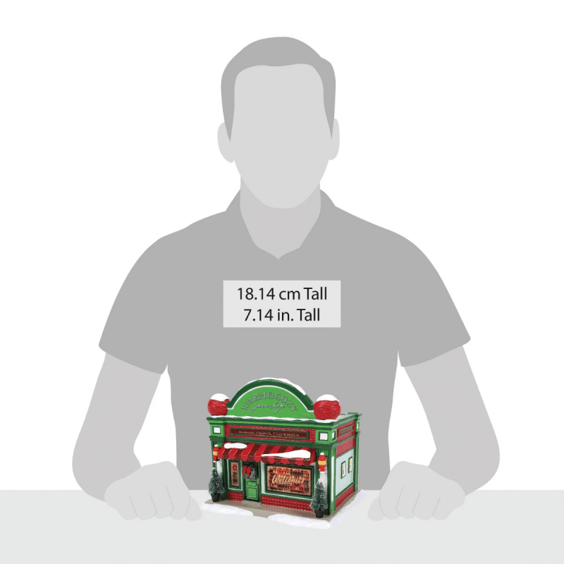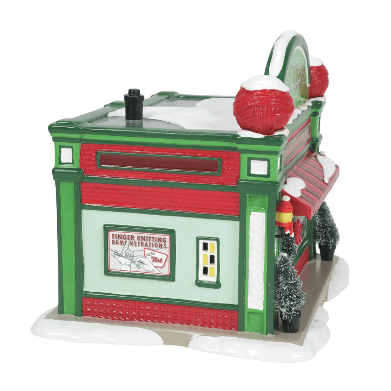 The “Department 56 | Warm & Cozy Yarn Shop Figurine” captures the festive bustle of knitting enthusiasts, crochet artists, and macramé makers, bringing holiday warmth and charm to any Christmas display.