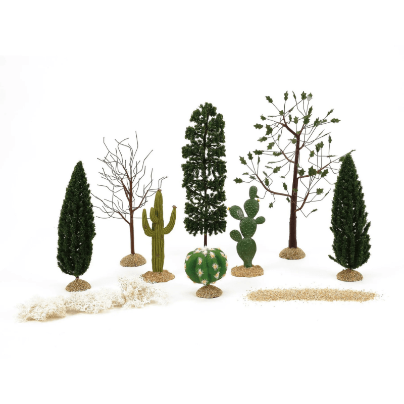 Bring a unique holiday twist with the “Department 56 | Canyon View Landscape Set Figurines.” This 10-piece set features sand, cacti, tumbleweeds, and Southwestern foliage, perfect for adding desert charm to your display.
