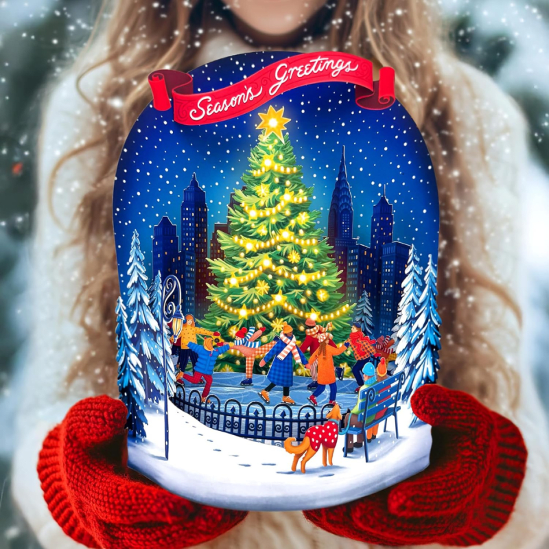 Celebrate the season with a festive skating bouquet card, featuring joyful winter scenes and glowing holiday charm, an unforgettable gift to display, share, and treasure annually.