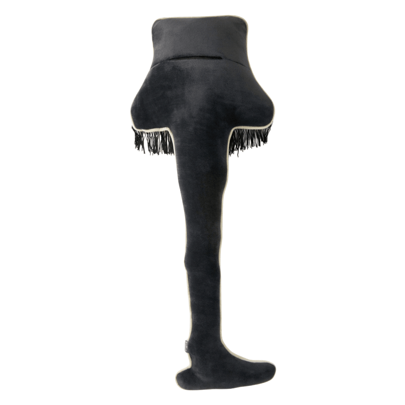 Bring a playful pop of nostalgia to your holiday decor with this Light-Up Leg Lamp Pillow inspired by A Christmas Story. Designed in the iconic lamp silhouette, complete with fishnet-clad leg, high heel detail, and a fringed shade, it adds a fun and cozy touch to any space. Press the button on top to illuminate the shade and enjoy a warm, quirky glow perfect for movie nights, seasonal decorating, or gifting to a fellow fan of the classic film.