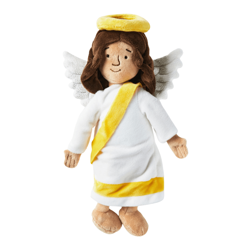 This 13" plush doll of Gabriel, the Christmas Angel, offers a huggable way for children to engage with the Nativity story. Perfect as a snuggly gift for baptisms, First Communions, birthdays, or Christmas, this guardian angel toy provides comfort and security to your little one.