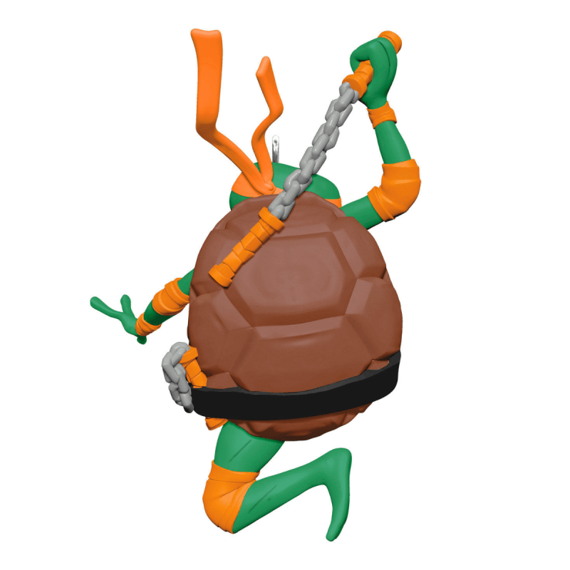 Get ready for holiday action with Michelangelo from Teenage Mutant Ninja Turtles: Mutant Mayhem! This ornament features Mikey in his signature orange mask, nunchucks in hand, and full of turtle power.