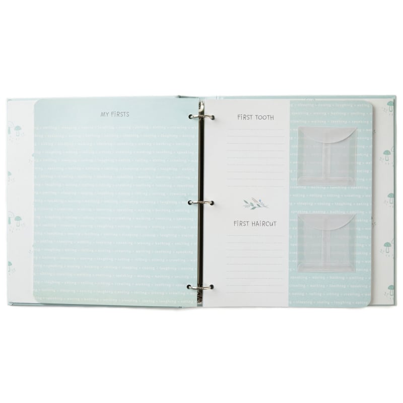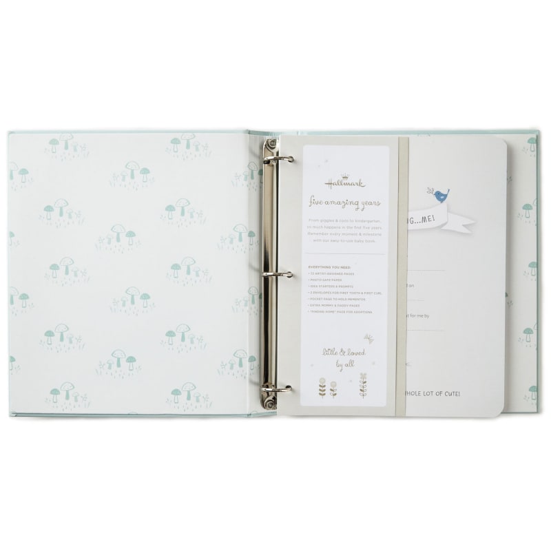 Preserve life’s earliest memories with the Little Blessings First Five Years Baby Book. This classic baby keepsake features a soft green cover with a charming lamb illustration and heartfelt sentiment. Inside, 72 beautifully designed pages include prompts, photo spaces, and a poly pocket for treasured mementos. A convenient three-ring binding allows pages to be easily arranged or expanded, making it simple for parents and family members to record and cherish baby’s milestones during the first five years.