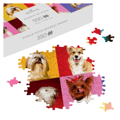 Give the perfect gift or present to any dog lover with this Plenty of Pups 550-Piece Jigsaw Puzzle. Featuring adorable puppies in every shape and size, it's a fun, heartwarming activity.