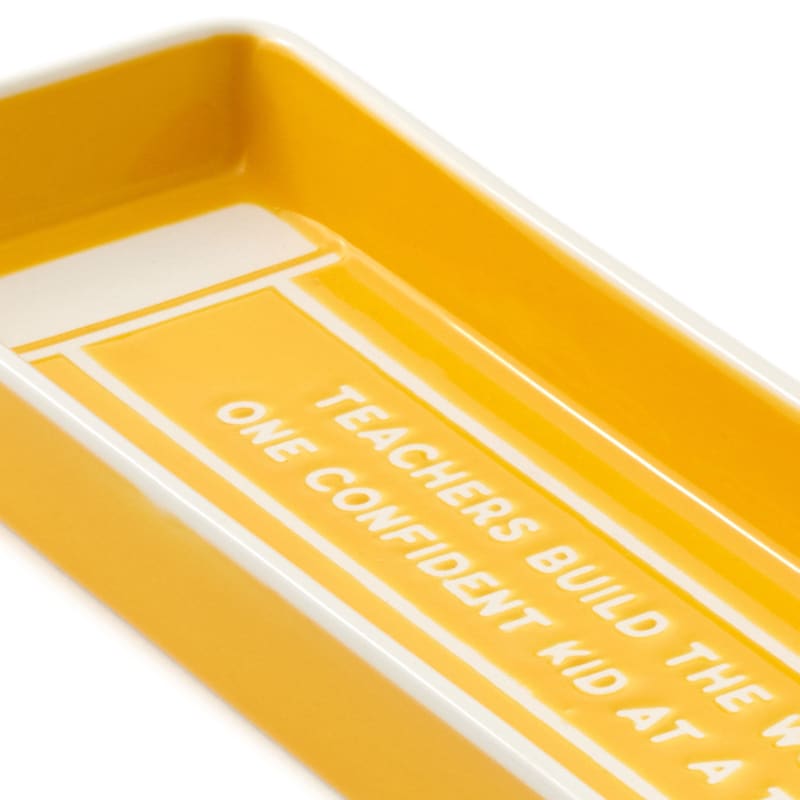 Add a fun and functional touch to a teacher’s desk with the Teacher's Yellow Pencil-Shaped Trinket Dish. This cheerful tray holds keys, pens, chalk, and more, featuring a sweet message along its pencil design. Perfect as decor for a classroom or home office, it also makes a thoughtful gift or present for teacher appreciation, back-to-school, or any occasion to celebrate a favourite educator.