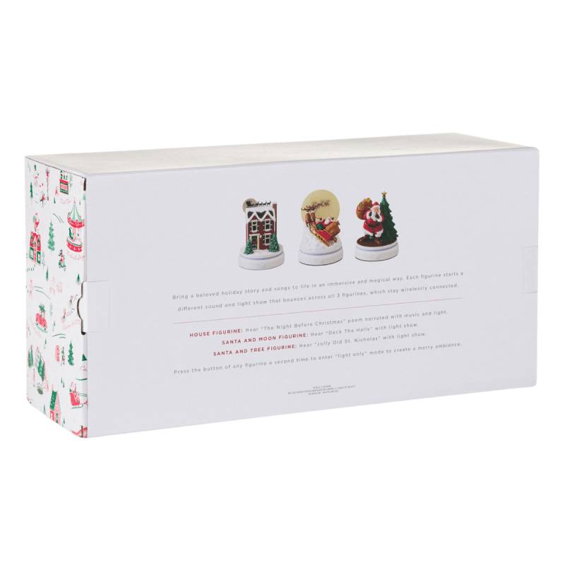 Bring Christmas Eve to life with The Night Before Christmas Interactive Figurines With Light and Sound, Set of 3. This charming trio features Santa in classic holiday scenes, complete with synchronized lights, music, and narration, creating a festive display perfect for your home or as a magical gift for loved ones.