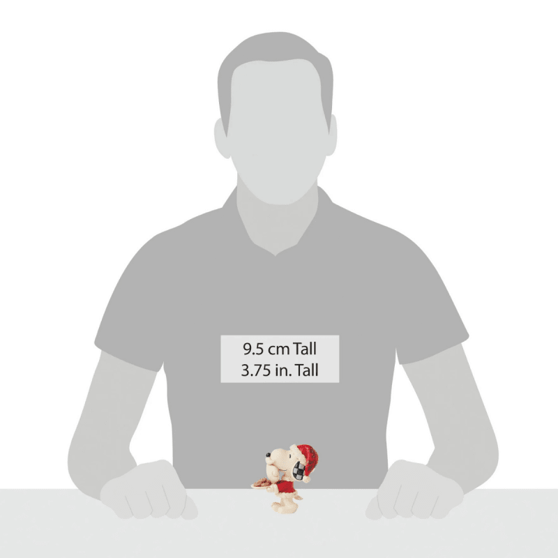 This charming Jim Shore mini figurine features Snoopy dressed as a cheerful Christmas elf, holding a candy cane with a joyful grin. A festive piece that captures the playful spirit of the season.