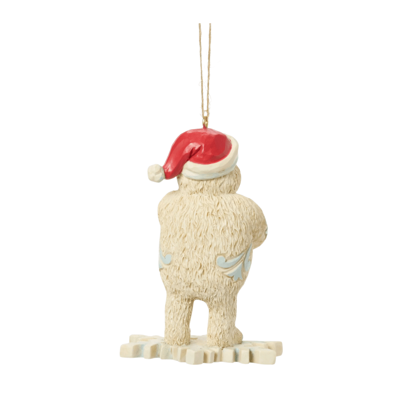 Bring playful cheer to your holiday with this Jim Shore ornament featuring Bumble atop a snowflake. Wearing a Santa hat and holding snowballs, the lovable Abominable Snowman adds festive fun to your décor.