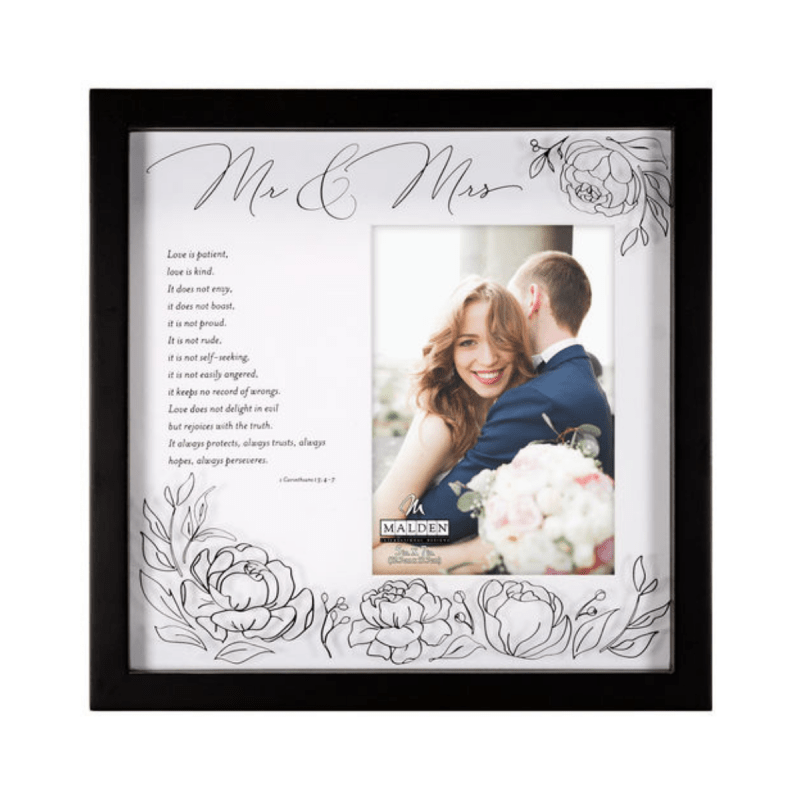 This elegant present is the perfect wedding gift, featuring a shadowbox picture frame that beautifully displays memories inside the Malden 'Mr. & Mrs.' design!