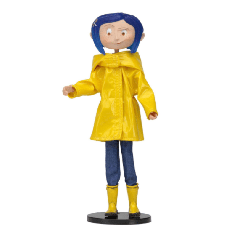 Bring the magic of Coraline home with the 7.5-inch NECA Coraline Raincoat & Boots Figurine! Featuring real fabric clothing, articulated joints, and bendable limbs with movable eyes, it includes a display stand for collectors.