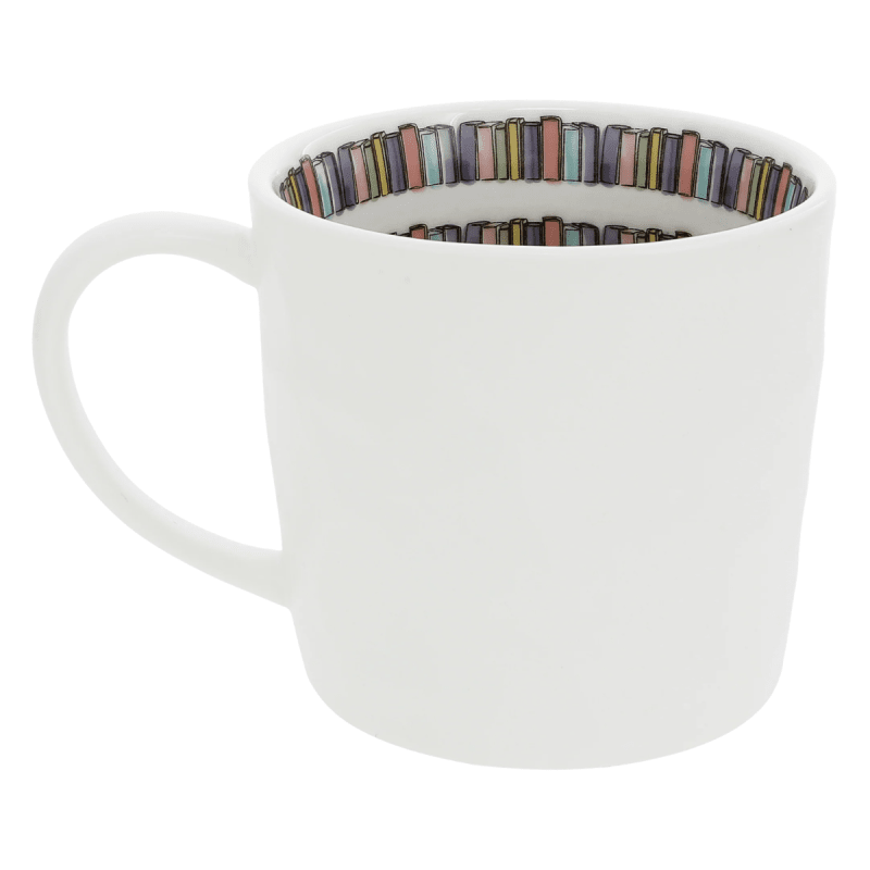 This 16 oz ceramic mug features a durable, glossy finish, a comfortable handle, and is microwave and dishwasher-safe for everyday use. The design reads “Fuel for the Plot Twist” with a cozy book-and-coffee illustration, while the interior showcases a colourful bookshelf pattern, adding a fun, literary touch for book lovers.