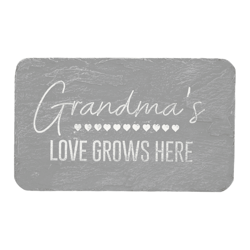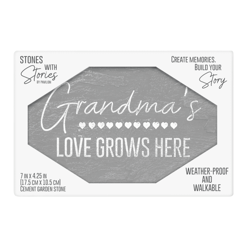 Crafted from durable, weather-resistant cement fiber, this rectangular garden stone is designed to withstand the elements while adding lasting charm to any space. Featuring a textured gray surface, rounded edges, and a row of hearts alongside the sentiment “Grandma’s Love Grows Here,” it brings warmth, love, and a welcoming touch to gardens, patios, or indoor displays.