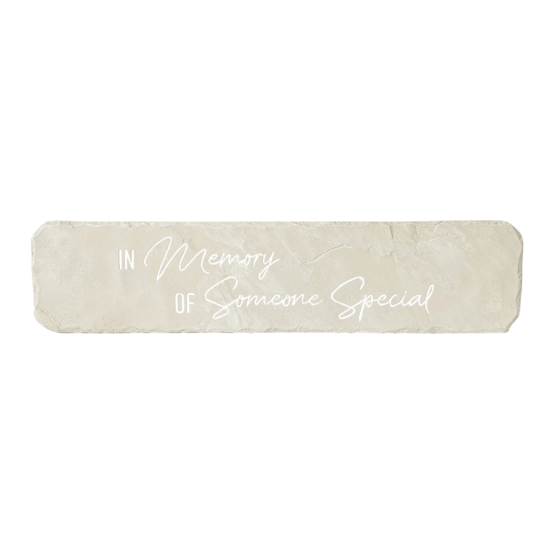 Crafted from durable, weather-resistant cement fiber, this rectangular garden stone is designed to last while maintaining its smooth finish and natural texture. Featuring the heartfelt sentiment “In Memory of Someone Special” in a gentle script, it offers a simple yet meaningful tribute. Perfect for gardens, patios, or memorial spaces, it brings comfort, peace, and a lasting reminder of cherished memories.