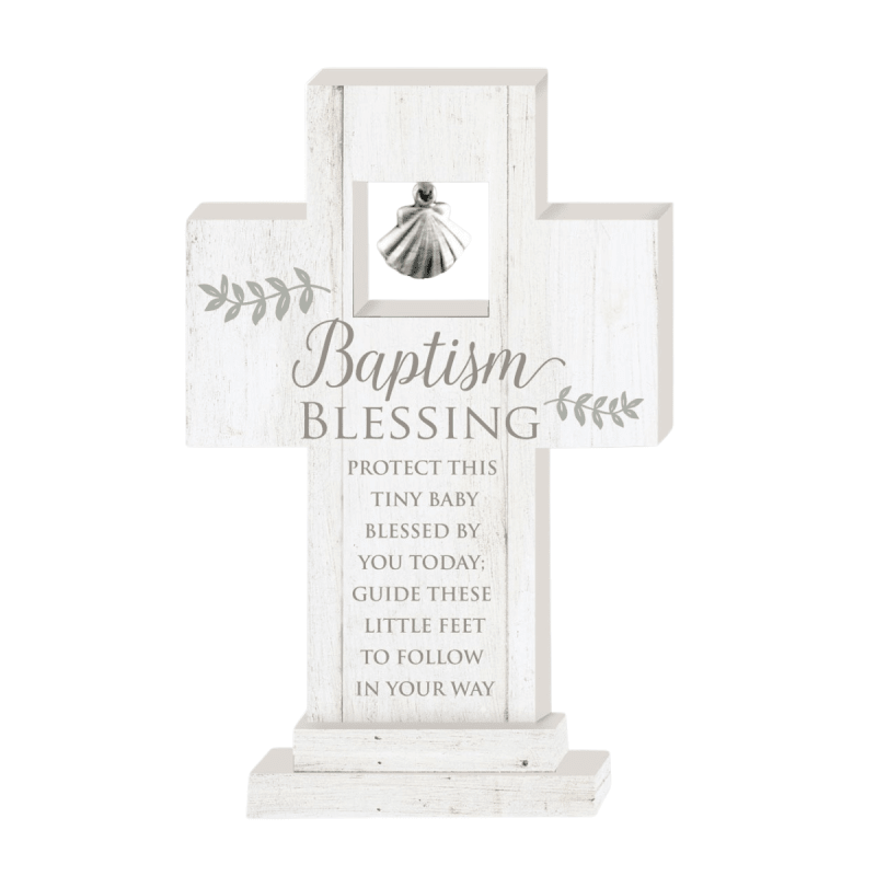 Gift the Baptism Blessings with Charm Standing Cross, a perfect present that symbolizes faith and grace. This beautiful cross is an ideal blessing for any home or baptismal celebration.