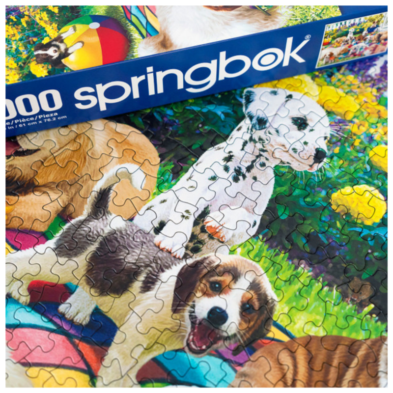 Celebrate furry fun with the Playful Pups on Parade 1,000-Piece Puzzle. Perfect for dog lovers and families alike, this charming puzzle brings playful puppies and joyful moments to game night or holiday gatherings.