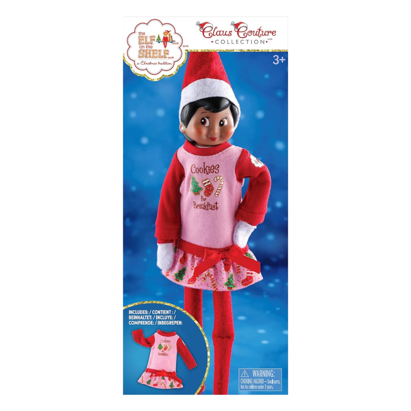 The Elf on the Shelf® | Claus Couture Collection® Yummy Cookie PJs make a perfect gift. This adorable PJ set features a cute cookie design, adding festive cheer to your Elf on the Shelf.